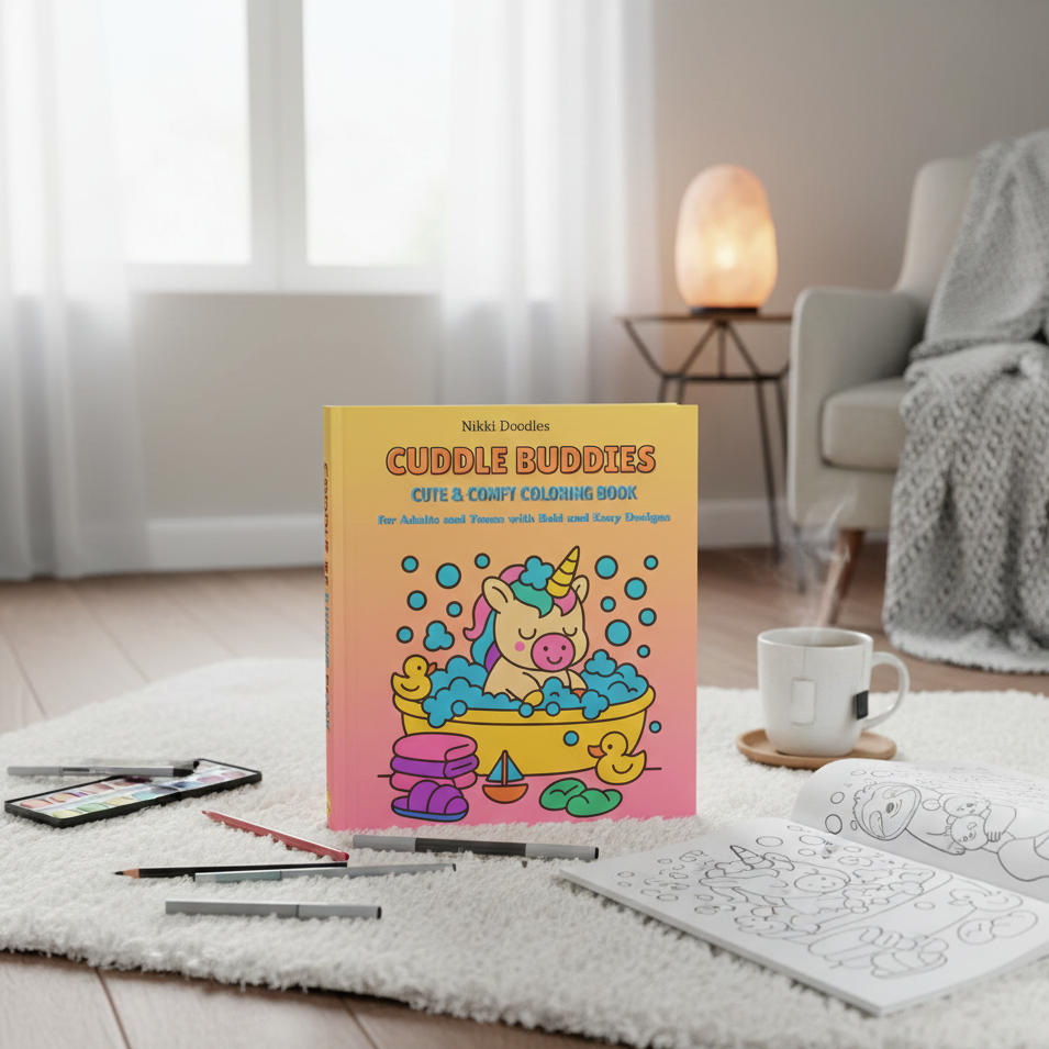 Cuddle Buddies Coloring Book is created for adults and teens who want a calming, screen-free way to relax. It’s ideal for stress relief, mindful creativity, and anyone seeking a cozy emotional reset through art.